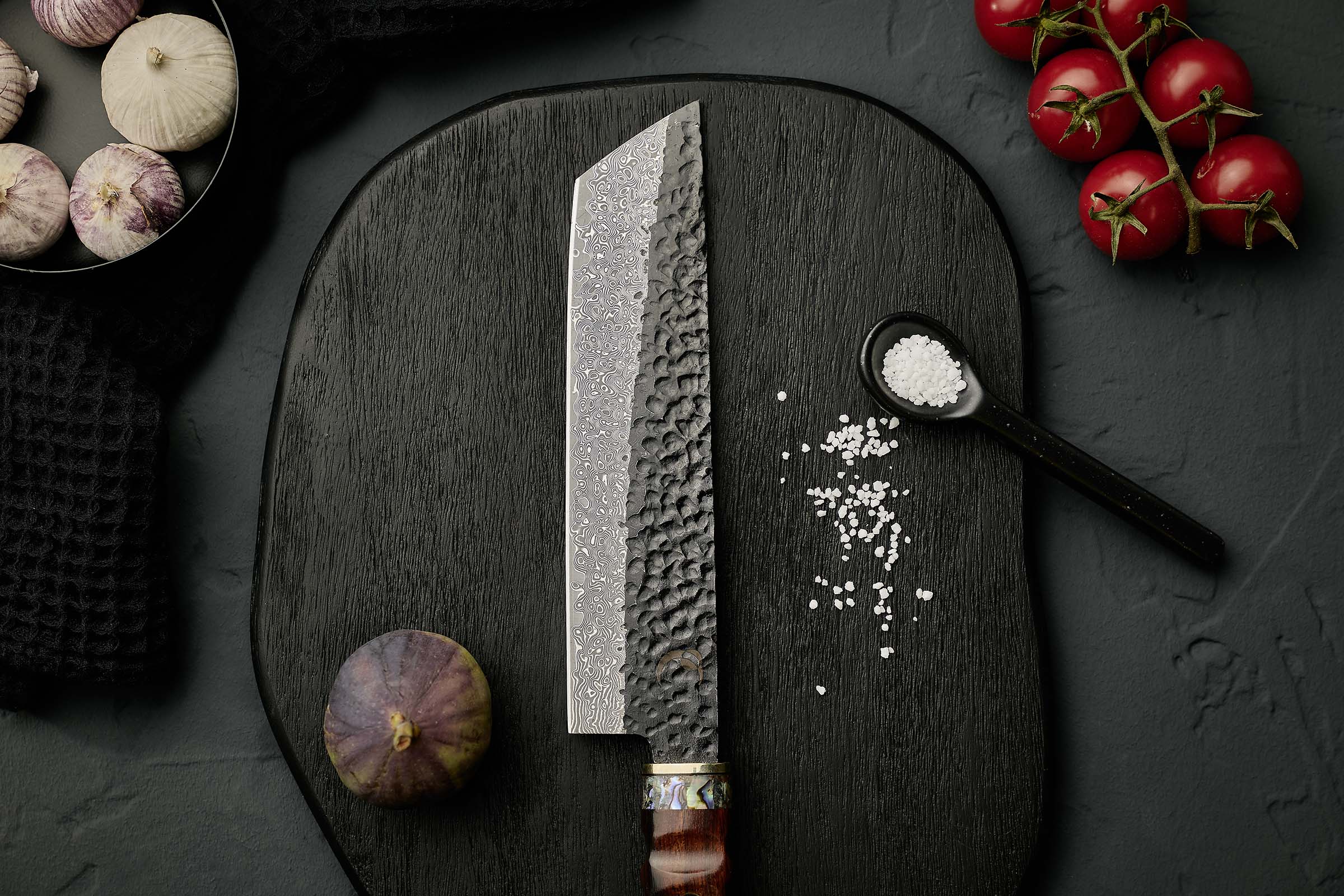 كل سكين – قطعة فريدة. نسيج الدمشق وهيكل محار الأبالون يختلفان في كل سكين.