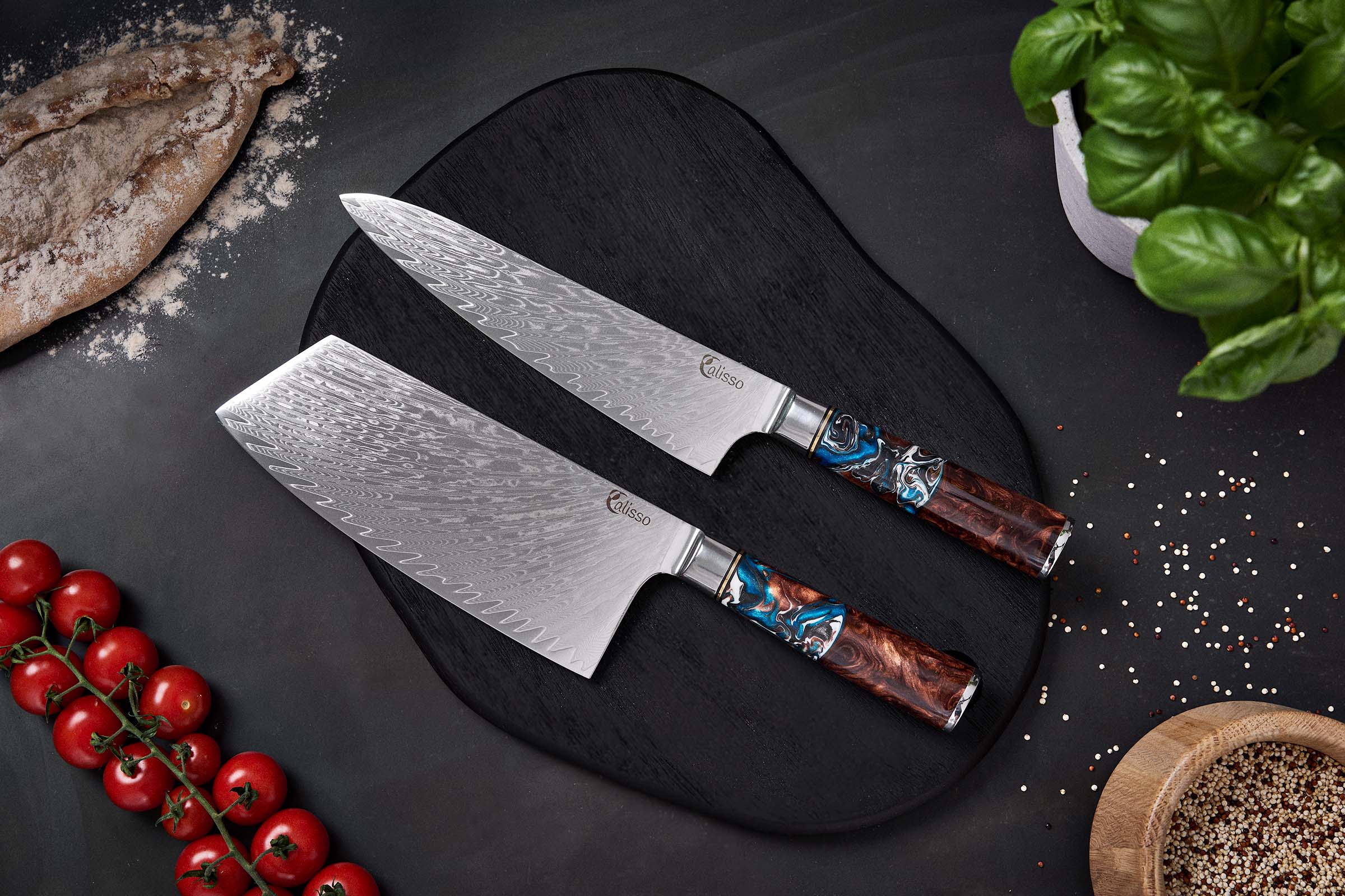 يُعدّ طقم الأداء مثالياً للمحترفين المختارين من أهل المطابخ، ولمن يرغب في أن يصبح كذلك. سكين «تشاي داو»، العبقري الصيني الشامل، لا غنى عنه في أي مطبخ احترافي بفضل نصله المنحني قليلاً وحدة حافظته الاستثنائية. أما سكين الطهاة لدينا فهو عبقري حقيقي في كل شيء؛ بفضل نصله الطويل تستخرجون أقصى ما يمكن من كل تجربة طهي. التصميم المريح للسكينين المتعددي الاستعمالات يضمن استخداماً مريحاً حتى في جلسات الطهي الطويلة، لتصبح متعة حقيقية.