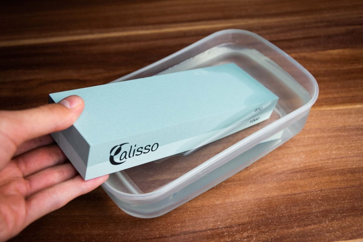ننصح المبتدئين خصوصًا بالتمرين على سكين طبخ آخر قبل شحذ سكاكين كاليسو! الشحذ الخاطئ قد يؤدي إلى خدوش في الشفرة، ونريدكم أن تظلوا أصحاب سكاكين حادة وجميلة على المدى الطويل.