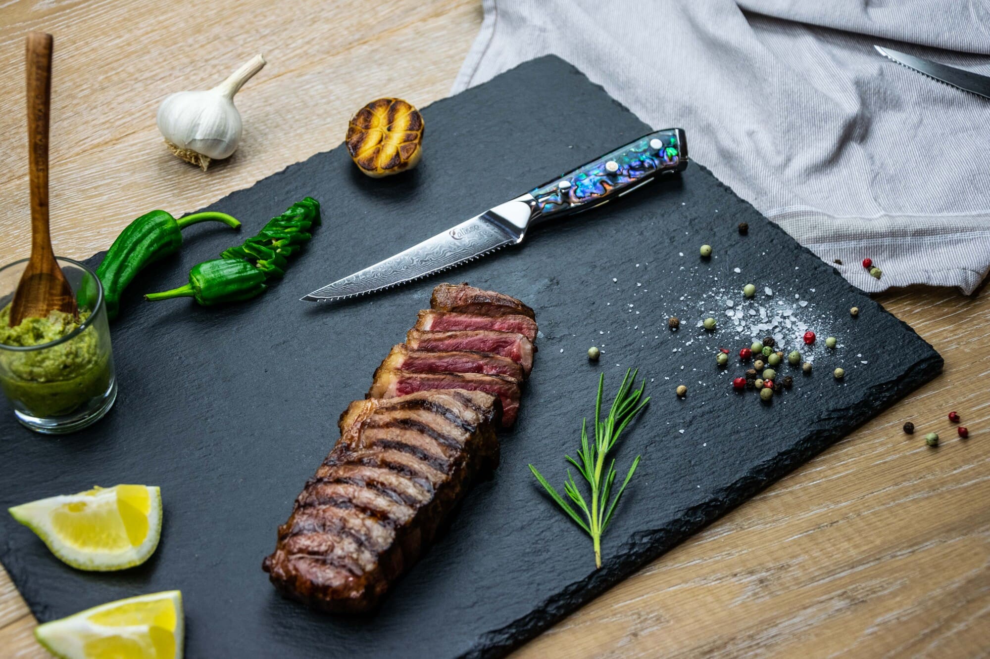 سكين شريحة اللحم يتألق بحدّة ممتازة، وهي أمر بالغ الأهمية خاصة مع شريحة اللحم الجيدة. الأسطح الصلبة مثل السيراميك ليست تحديًا لسكين شريحة اللحم، فبفضل الحافة المموجة تبقى الشفرة حادة جداً لفترة طويلة. وهكذا سيصبح حفل شريحة اللحم التالي بعد القادم حدثاً رائعاً.